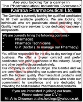 Vacancies in Pharmaceutical Company Advertisement May 2023