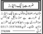 Kamran Book Store Multan Jobs 2024 for Bike Rider