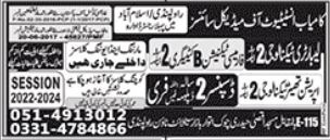 Kamyab Institute of Medical Sciences admissions 2022 for Lab Technology, Operation Theatre Technology, Dispenser, Pharmacy Technician Category B has been announced. Eligible students who qualify as per admission criteria in Kamyab Institute of Medical Sciences Rawalpindi Punjab Pakistan can apply in Computer Medical College for academic year 2022. Students who want to enroll for academic session 2022 in Diploma qualification and admission criteria for Private institute can apply till last date 30 November 2022. Read newspaper ad for exact details.