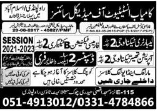 Kamyab Institute of Medical Sciences Course, Laboratory Technology, Pharmacy Technician, Operation Theater Technology, Dispenser admissions 2022 has been started. Eligible students can apply for academic admissions 2022 in Kamyab Institute of Medical Sciences Islamabad Rawalpindi Islamabad Pakistan for Medical Medical College. Students for admissions in Course and B Pharmacy & criteria can apply as per Private institute admission policy 2022 before closing date as per advertisement. Read newspaper ad for exact details.