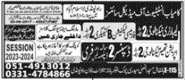 Admissions in Kamyab Institute of Medical Sciences 2023 for Lab Technology,Pharmacy Technician,Dispenser,Operation Theatre Technology has been announced. Students who want to take admissions in Kamyab Institute of Medical Sciences Rawalpindi Punjab Pakistan for academic year 2023 to continue education in Medical College can apply. Students for admissions in Course can apply for online or campus classes as per Private institute criteria till admission closing date June 20, 2023. Read newspaper ad for exact details.