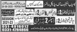 Kamyab Institute of Medical Sciences admissions 2022 for Laboratory Technology Diploma, Pharmacy Technician Diploma, Operation Technology Diploma, Dispenser Course has been announced. Kamyab Institute of Medical Sciences Wah Cantt Punjab Pakistan welcomes students to apply for admissions in academic year 2022 in Medical College. Students for admissions in Course, DAE and Diploma can apply for online or campus classes as per Private institute criteria till admission closing date January 31, 2022. Read newspaper ad for exact details.