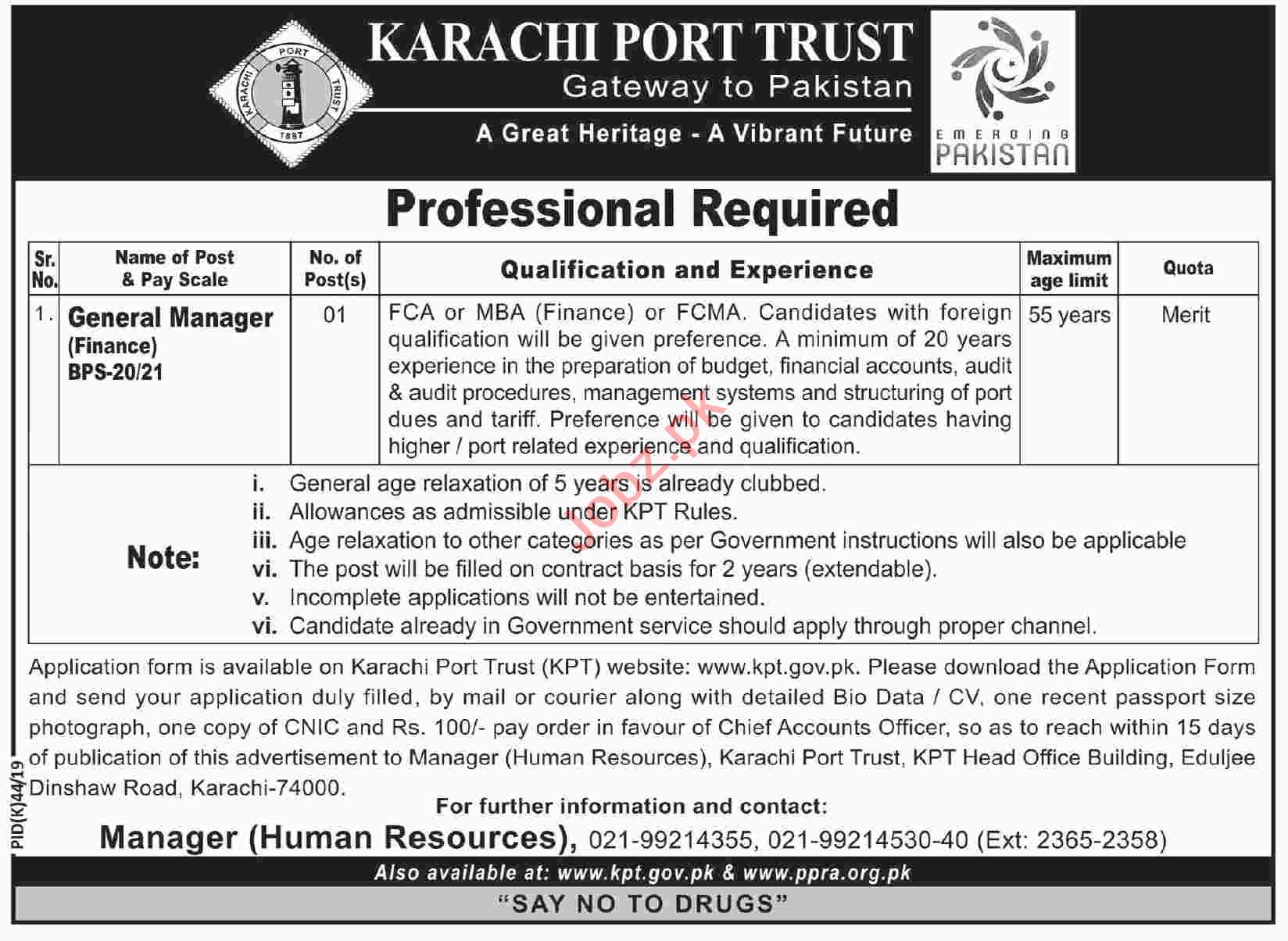 Karachi Port Trust General Manager Jobs 2019