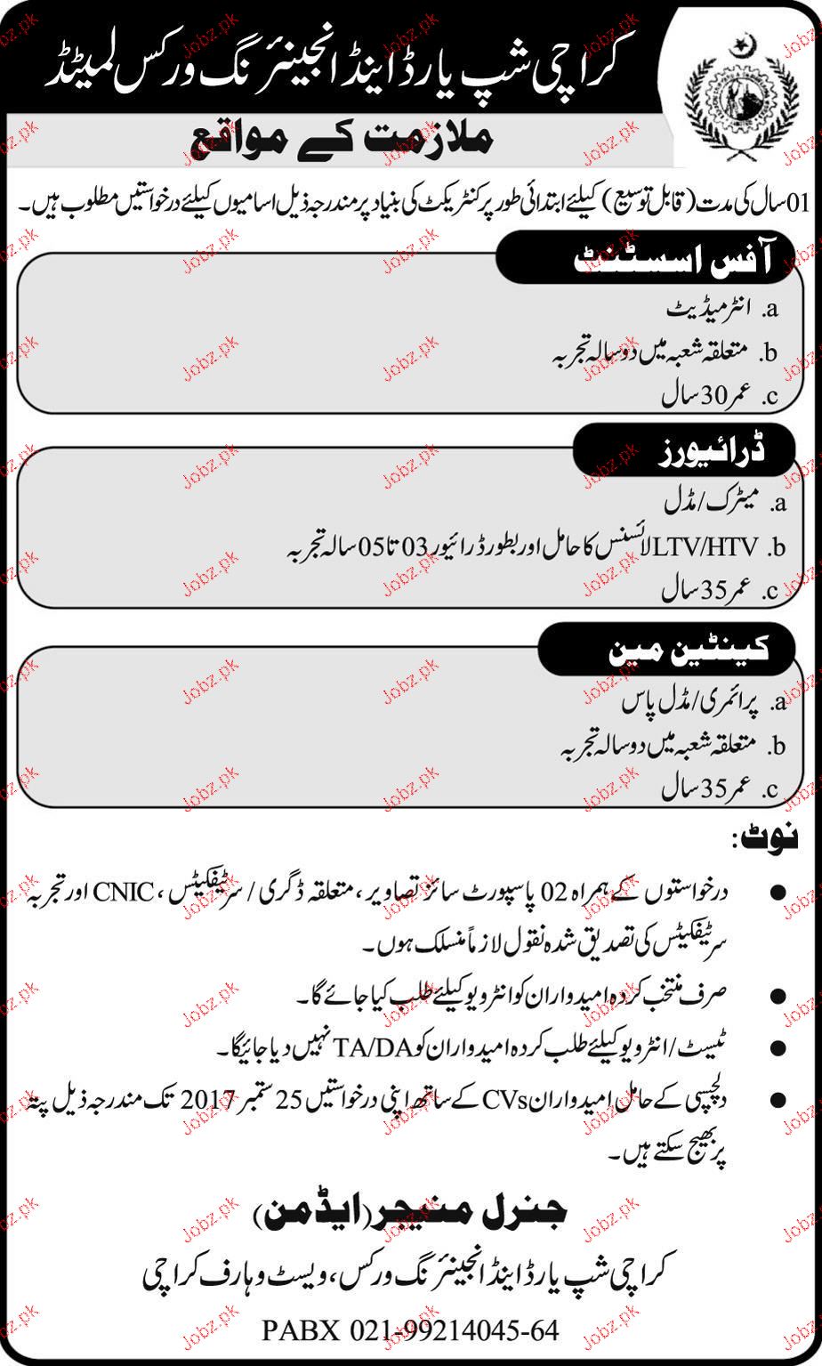 Karachi Shipyard And Engineering Work Limited KSEW Jobs Open