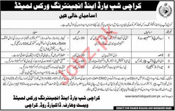Vacancies in Karachi Shipyard and Engineering Works Limited Advertisement December 2018