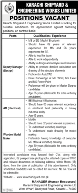 Vacancies in Karachi Shipyard and Engineering Works Limited Advertisement November 2020