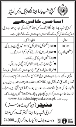 Vacancies in Karachi Shipyard and Engineering Works Limited Advertisement May 2021