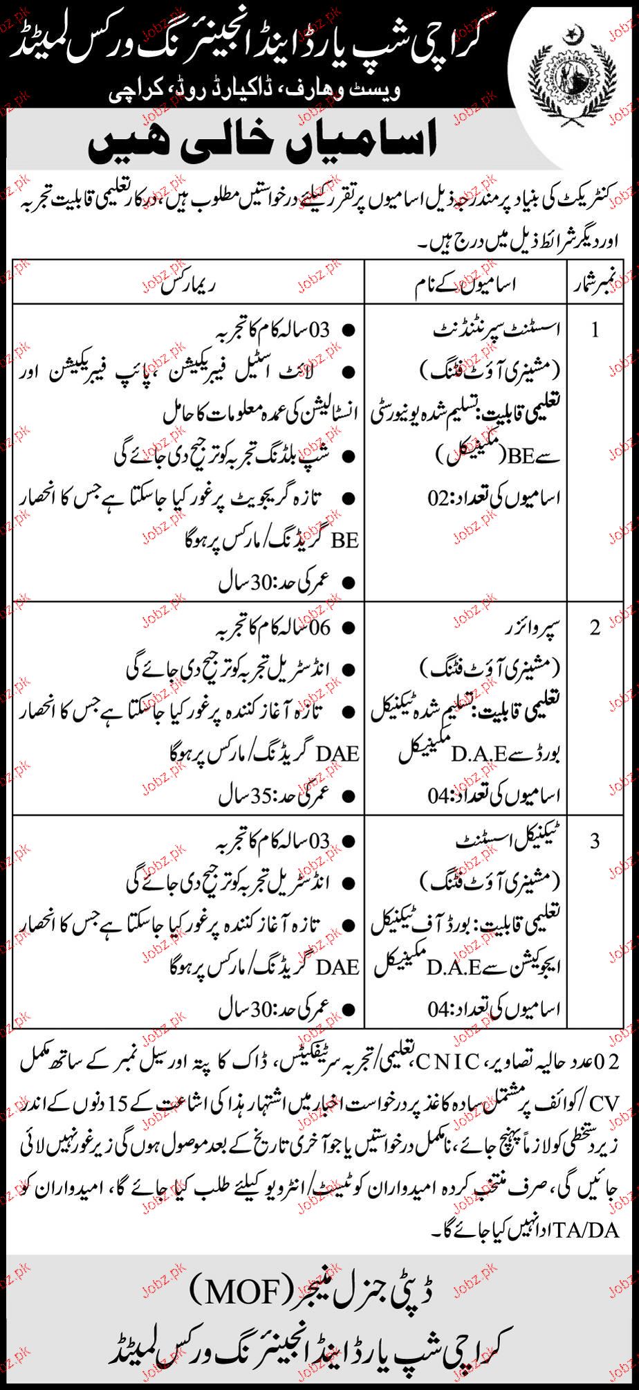 Latest Karachi Shipyard and Engineering Works Limited Industrial Posts Karachi 2025