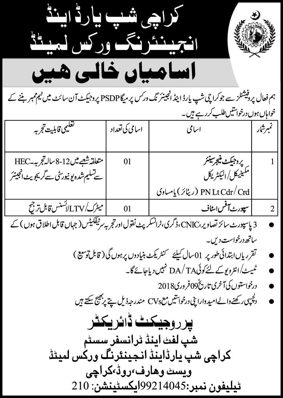 Latest Karachi Shipyard and Engineering Works Limited Management Posts Karachi 2025