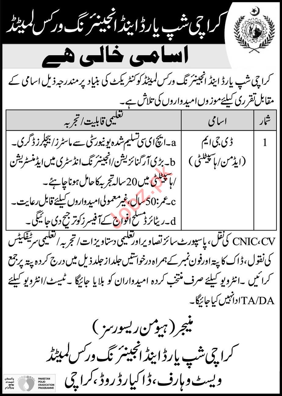 Vacancies in Karachi Shipyard and Engineering Works Limited Advertisement December 2019