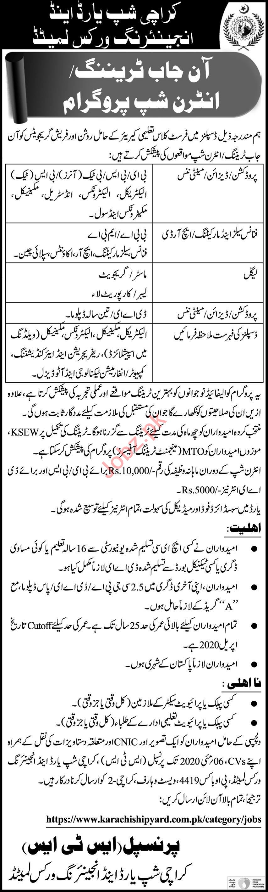 Vacancies in Karachi Shipyard and Engineering Works Limited Advertisement April 2020