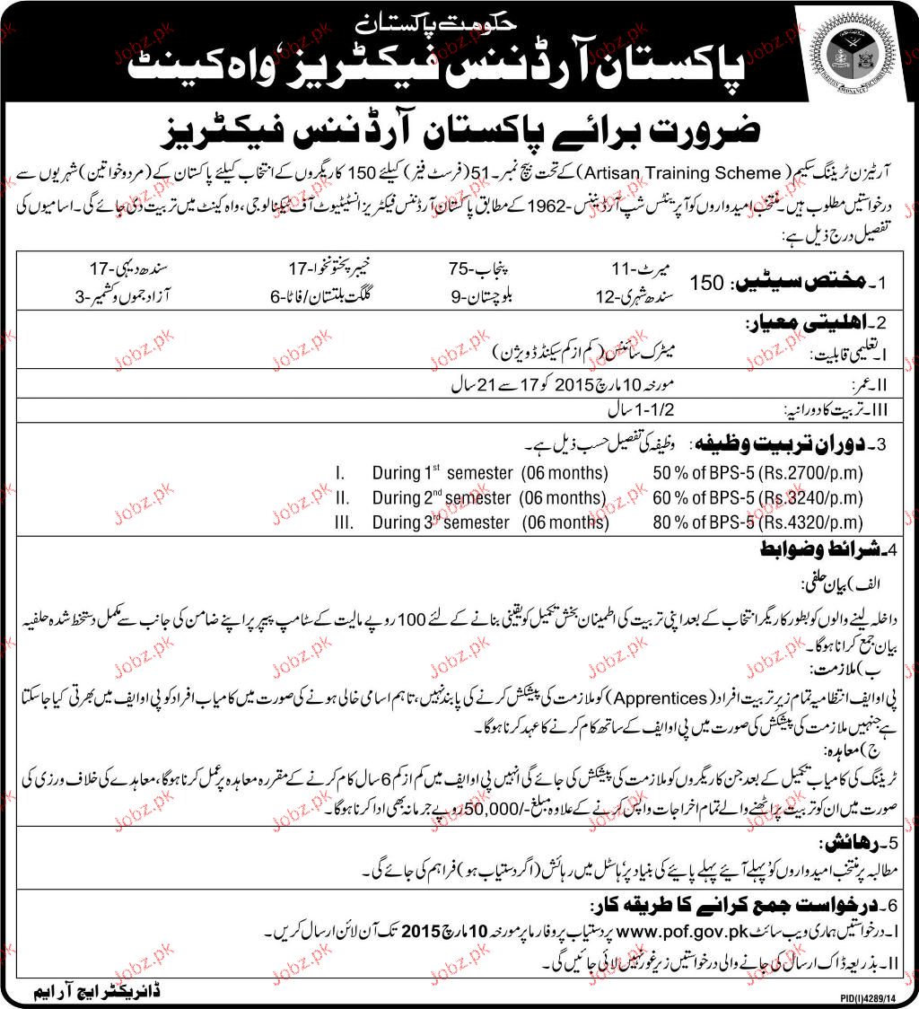 Karigers Job In Pakistan Ordinance Factories