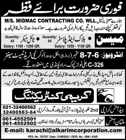 Vacancies in Karimi Contracting Company Advertisement September 2021