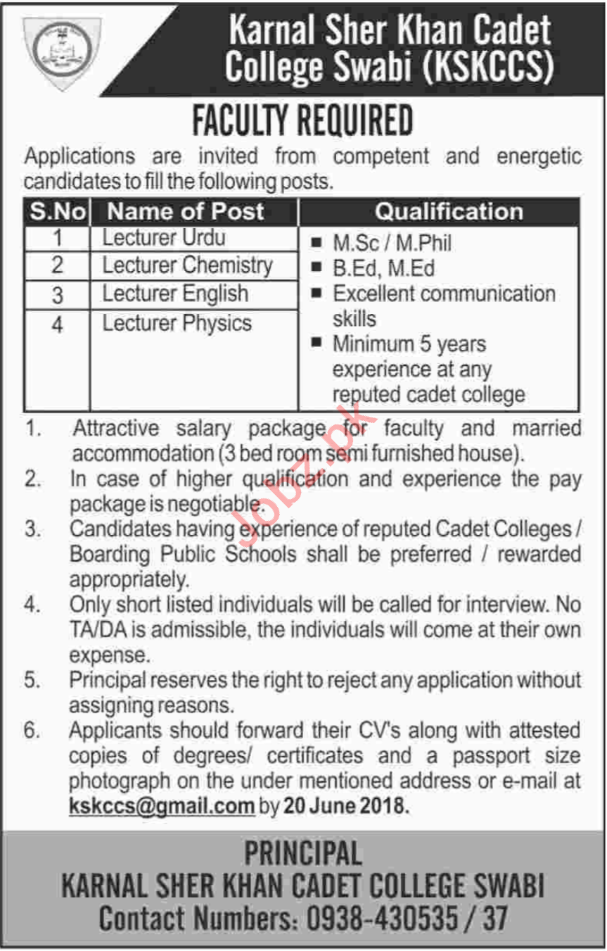 Latest Karnal Sher Khan Cadet College Swabi Education Posts Swabi 2025