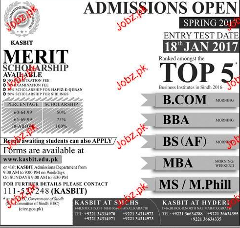 KASBIT Admission in BBA, BS, MBA and MS in Karachi. Read newspaper ad for exact details.
