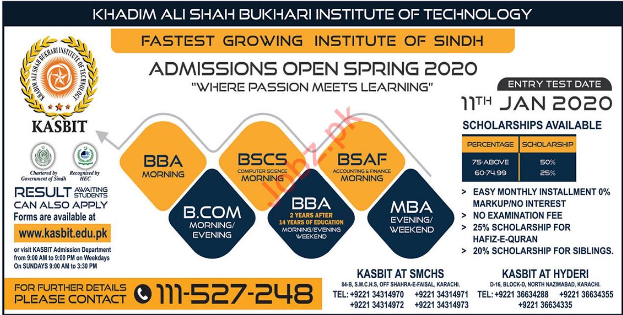 KASBIT University Bachelor & Masters Spring Admissions 2020