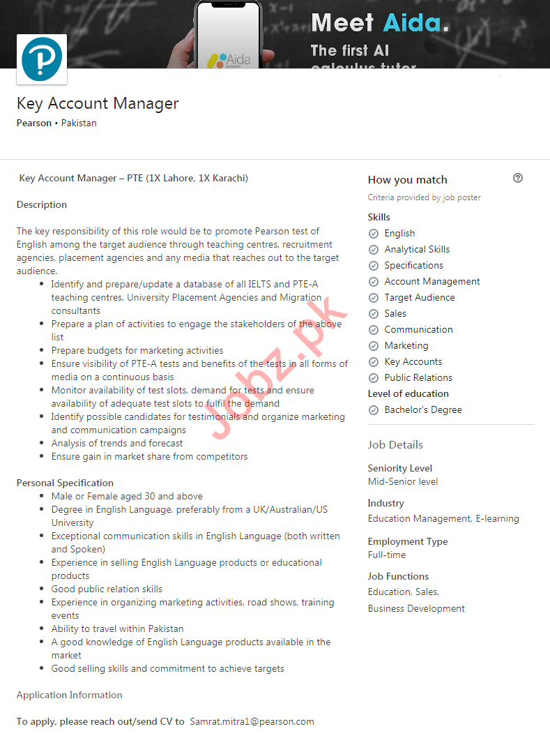 Key Accounts Manager Jobs In Pearson Publishing Company
