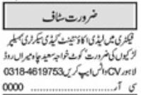 Factory invites applications for job positions advertised in daily Khabrain dated 14 April 2025 for following vacancies in Kot Khawaja Saeed Lahore, lahore Punjab Pakistan.