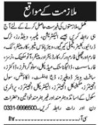 Private Company invites applications for job positions advertised in daily Khabrain dated 14 July 2025 for following vacancies in Islamabad, islamabad Islamabad Pakistan.