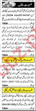 Salesman, Insurance Agent, Sales Officer, Cook, Security Guard, Watchman, Driver, Kitchen Helper, Dish Washer, Loader, Waiter, Receptionist, Supervisor, Chef, Maid, Assistant Nurse, LHV, OT Technician, Public Dealing Expert, Office Assistant, Field Officer seeks in well reputed companies.
