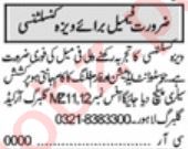 Education Visa Consultancy Firm Lahore, lahore Punjab Pakistan invites applications from eligible candidates for the post of visa consultant as per advertisement of May 20, 2024 published in daily Khabrain Newspaper. Intermediate, Bachelor and BA etc. educational qualification will be preferred.