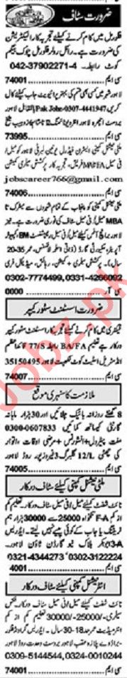Receptionist, Supervisor, Chef, Maid, Clerk, Admin Officer, Data Entry Operator, Cashier, Manager, Sales Staff, Computer Operator, Marketing Staff, Delivery Boy, Call Operator, Office Assistant, Hotel Manager, Sweeper, Recovery Officer, Pharmacist seeks in well established companies.