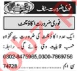 Apply as per details in job advertisement. Login to view further details of how to apply via https://www.jobz.pk online.