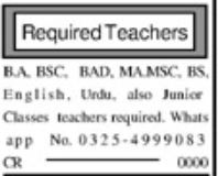 Vacant posts including urdu teacher, english teacher, teacher and female teacher are announced in Private School Multan, multan Punjab Pakistan as per 3 February 2025 advertisement in daily Khabrain Newspaper. Preferred Education is M.sc, Bachelor, BA, MA, Master and B.ed etc.