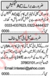 Private Company latest Classifieds Executive jobs and others can be applied till May 6, 2024 or as per closing date in newspaper ad. Read complete ad online to know how to apply on latest Private Company job opportunities. Skills in Air Conditioning and Sales Management may be preferred for these Private Company jobs. Free accommodation and food may be available.