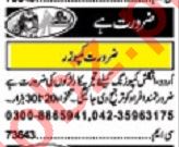 Khabrain Sunday Classified Ads 22 Dec 2019 For General Staff