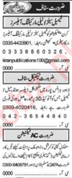 Private Company is looking for candidates for following posts as per job advertisement published in daily Khabrain Newspaper of July 24, 2023 for location Lahore, lahore Punjab Pakistan: