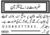 Shop invites applications for job positions advertised in daily Khabrain dated 28 April 2024 for following vacancies in Multan, multan Punjab Pakistan.