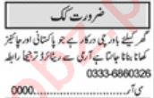 House Lahore, lahore Punjab Pakistan invites applications from eligible candidates for the post of cook, chinese cook and chef as per advertisement of January 1, 2024 published in daily Khabrain Newspaper. Candidates with Matric and Middle etc. educational background will be preferred.