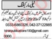 Kiran Publication is looking for candidates for following posts as per job advertisement published in daily Khabrain Newspaper of January 1, 2024 for location Lahore, lahore Punjab Pakistan: