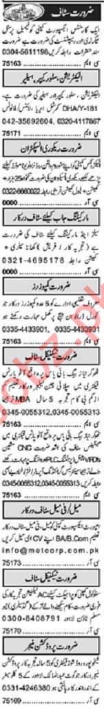 Khabrain Sunday Classified Ads 31st Jan 2021 General Staff