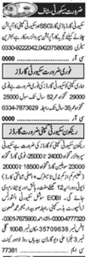 Vacant posts including operation supervisor, security staff, security guard and body guard are announced in Security Company Lahore, lahore Punjab Pakistan as per 6 June 2022 advertisement in daily Khabrain Newspaper. Educational qualifications required Intermediate, Middle and Matric etc.