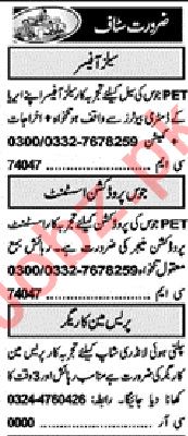 HR Officer, Supervisor, Assistant Supervisor, Account Manager, Teacher, English Teacher, Chemistry Teacher, Physics Teacher, Coordinator, Biology Teacher, Maths Teacher, Urdu Teacher, Art Teacher, English Teacher, Office Assistant, Salesman, Marketing Staff, Sales Staff, Computer Operator, Sales Manager, Sales Officer Nurse, Business Manager, Security Guard needs in well reputed companies.