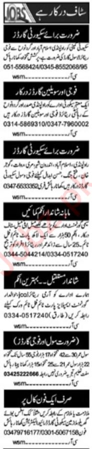 Private Company Rawalpindi, islamabad Punjab Pakistan invites applications from eligible candidates for the post of security guard, civil guard, fauji guard, electrician, ltv driver, house worker, driver, office boy and cook as per advertisement of November 14, 2022 published in daily Khabrain Newspaper. Preferred Education is Matric, Intermediate, Bachelor and Middle etc.