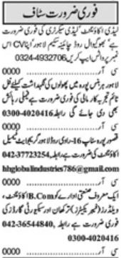 Private Company invites applications for job positions advertised in daily Khabrain dated 18 November 2024 for following vacancies in Lahore, lahore Punjab Pakistan.