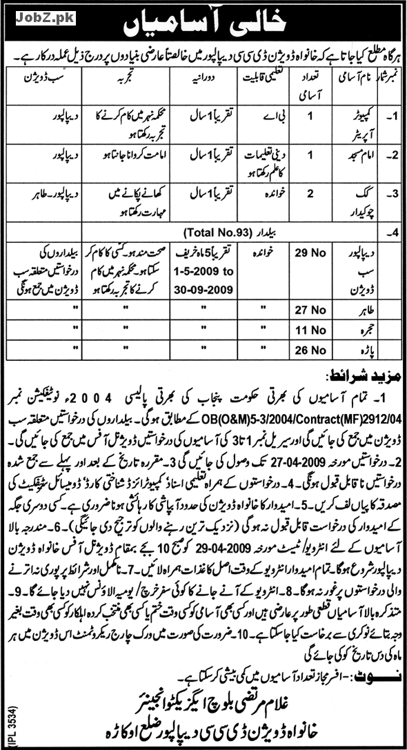 Apply as per details in job advertisement. Login to view further details of how to apply via https://www.jobz.pk online.