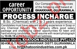 Khatoon Industries Gujranwala Jobs 2018 For Process Engineer