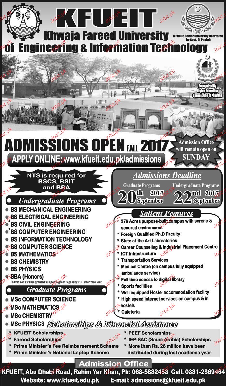 Khawaja Faraeed University of Engineering & Information Technology Admission in BS in Rahym Yar Khan. Read newspaper ad for exact details.