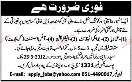 Latest Private Company Admin Clerical Posts Rawalpindi 2025