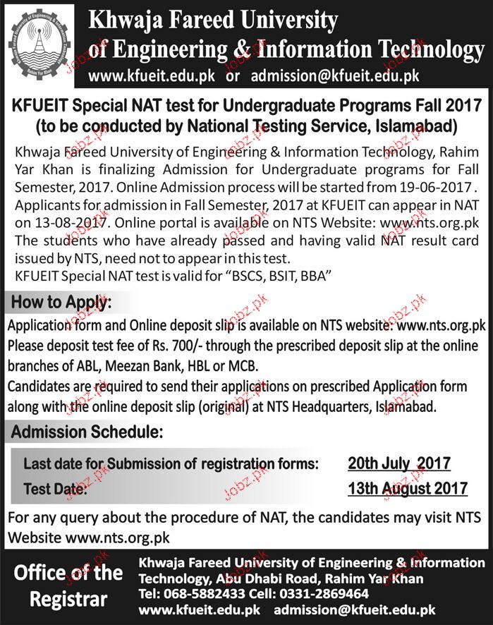 Khwaja Fareed University of Engineering & Information Technology Admission in Undergraduate Programs in Rahim Yar Khan. Read newspaper ad for exact details.