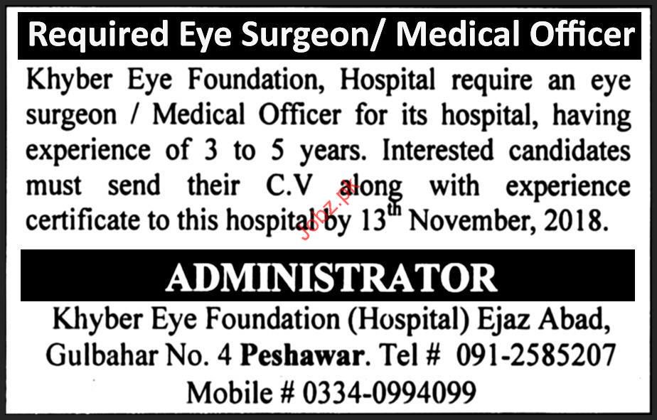 Khyber Eye Foundation Hospital Medical Officer Jobs 2018