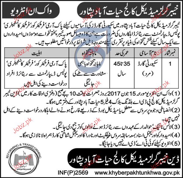 Latest Government Department Security Posts Peshawar 2025