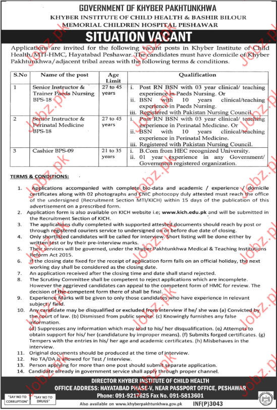 Khyber Institute Of Child Health MTI-HMC Jobs 2017