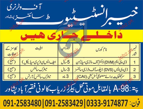 Khyber Institute of Veterinary Sciences Admission in Courses in Peshawar. Read newspaper ad for exact details.