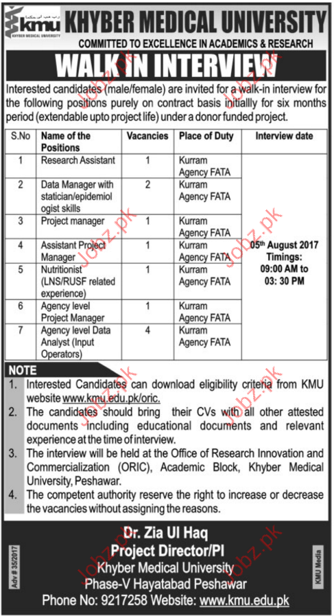 Apply as per details in job advertisement. Login to view further details of how to apply via https://www.jobz.pk online.