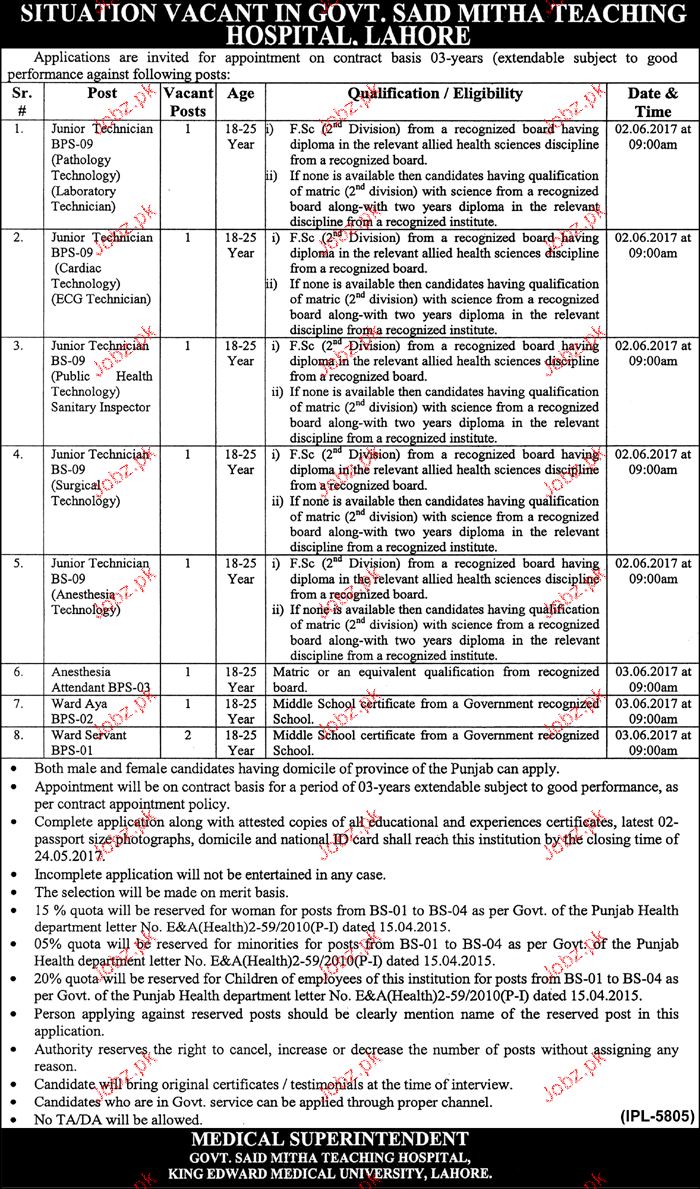 Apply as per details in job advertisement. Login to view further details of how to apply via https://www.jobz.pk online.